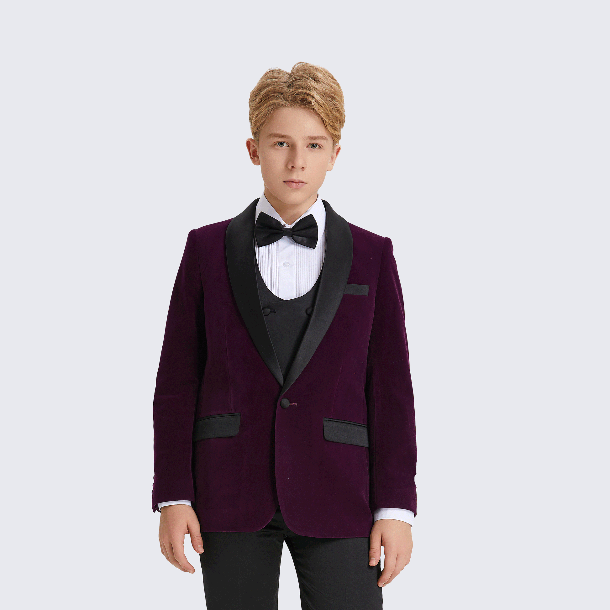 Boy's Purple Tuxedo Velvet 5-Piece Set for Kids Teen Children - Wedding