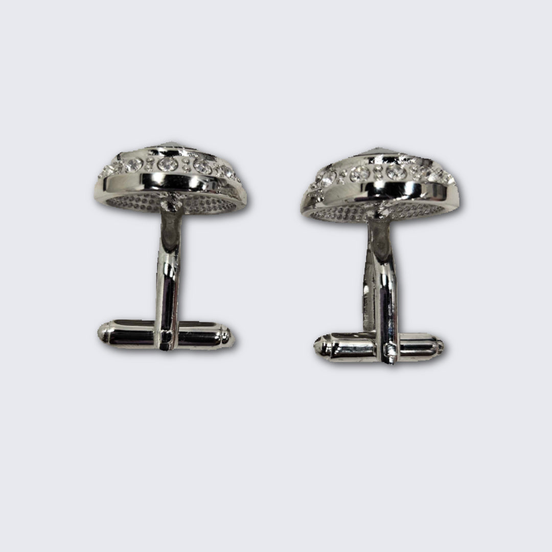 Black faceted crystal center and clear crystal rim cufflinks and studs set with silver plated metal finish. Cufflinks feature a bullet backing and studs feature a fixed backing. Comes with two cufflinks and four studs. Show your unique style and fashion with these formal sets. Cufflinks can be worn with convertible barrel cuffs or french cuff shirts. To create a more formal or stylish appearance use studs to complete your tuxedo shirt. To wear studs simply insert them into the slit above the button and use them in place of the regular button. This set comes boxed.