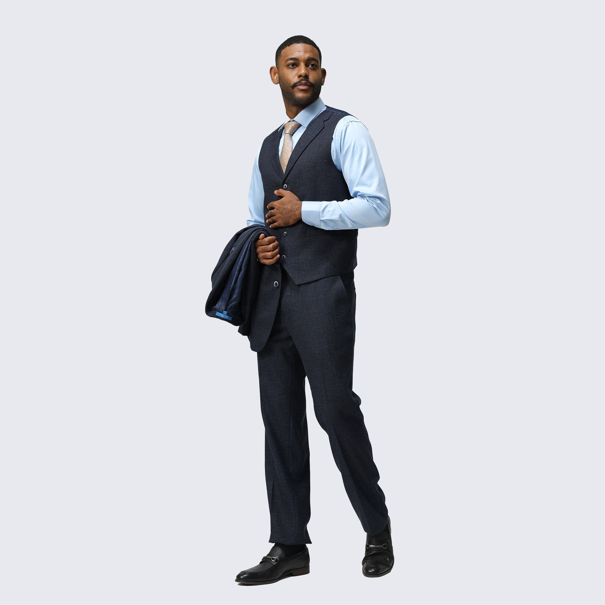 Navy Blue Tweed Suit Three Piece Set - Wedding - Prom